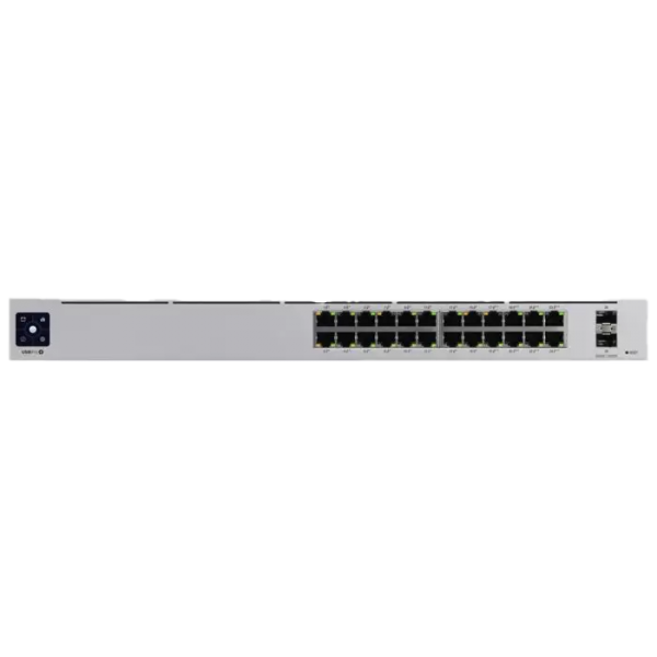 Ubiquiti's USW-PRO24 is a fully managed, Layer 3, UniFi switch with 24x Gigabit Ports and 2x 10G SFP+ uplink ports. It features innovative near-silent cooling and a 1.3" touch LCM (Liquid Crystal Monitor) to provide status information. It offers a rich set of layer 2 capabilities with integrated layer 3 functionality.