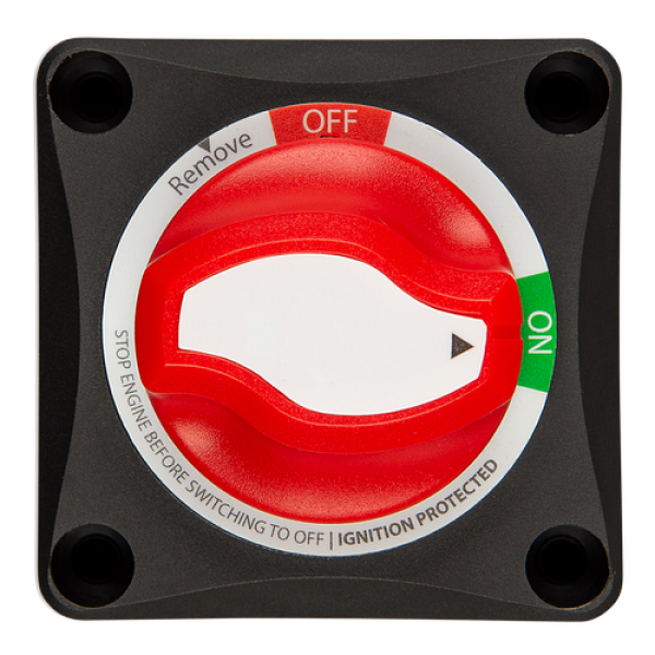 The knob is removable for isolation or safety purposes. The Battery Switch meets the