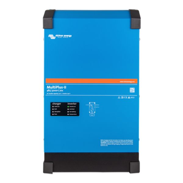 The MultiPlus-II is a multifunctional inverter/charger with all the features of the MultiPlus, plus an external current sensor option which extends the PowerControl and PowerAssist function to 50A resp. 100A. The MultiPlus-II is ideally suited for professional marine, yachting, vehicle and land based off-grid applications. It also has built-in anti-islanding functionality, and an increasingly long list of country approvals for ESS application. Several system configurations are possible. For more detailed information see the ESS Design and configuration manual.